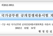 | 2013년 국가공무원 공채인원 올해보다 638명 증가한 3천748명으로 확정 (0) | 2012.12.31 |