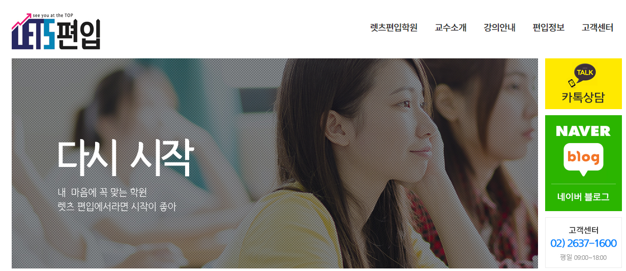 저는 편입 재수생입니다. 첫 해에는 건대에 있는 렛츠편입학원에서 하였고 재수를 할 때는 학기초에는 지방이기에 독서실에서 독학을 했고 역시 렛츠편입에서 10월말부터 독서실을 이용하면서 공부했습니다. 다른 학원들에 비해 내 책상이 생기고 계속해서 사용할 수 있다는 점이 가장 큰 장점이었기 때문에 재수임에도 불구하고 같은 학원을 이용하였습니다.