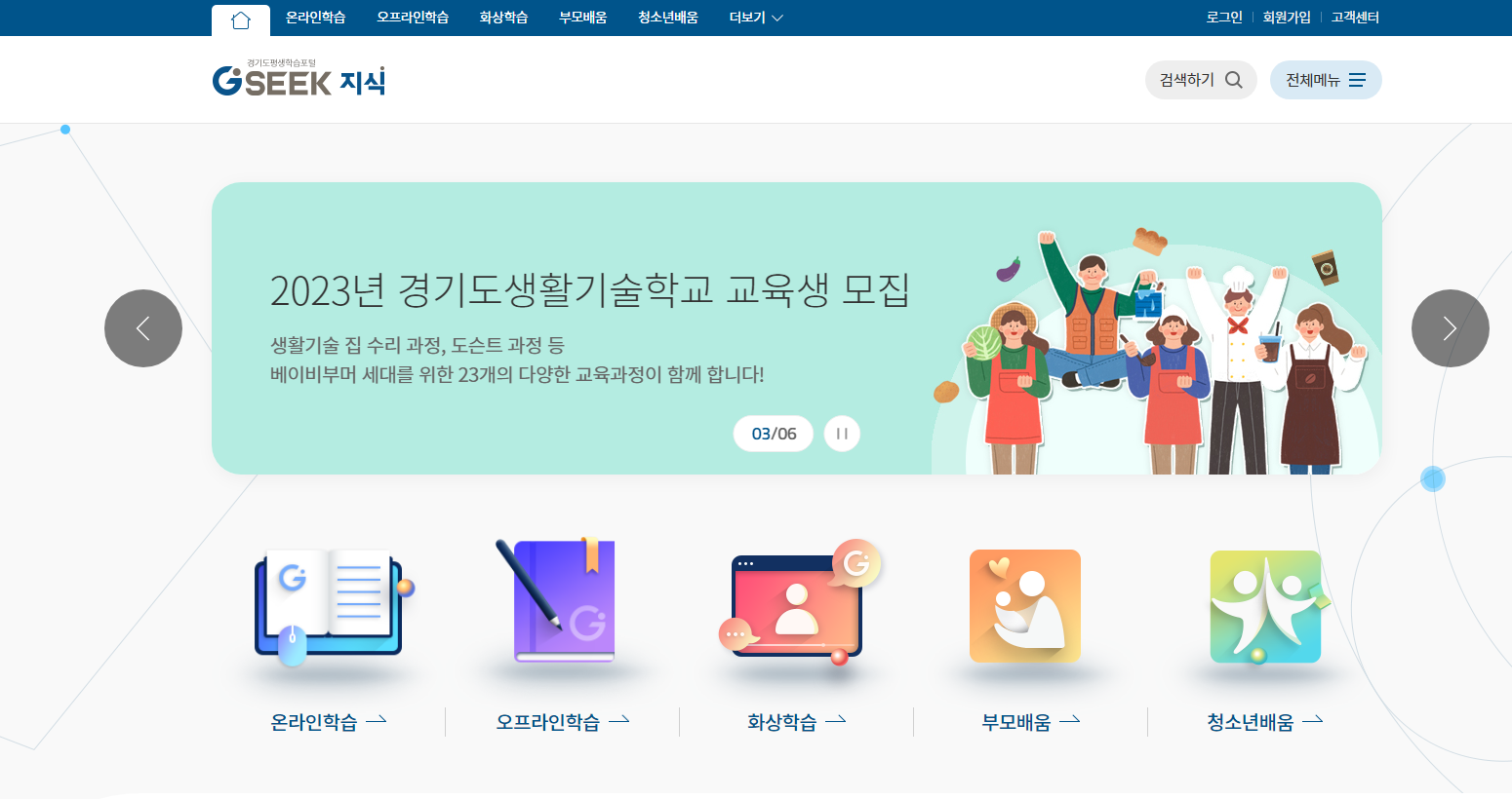 자~ 여기 경기도평생학습 포털 지식(GSEEK) 사이트가 있습니다.