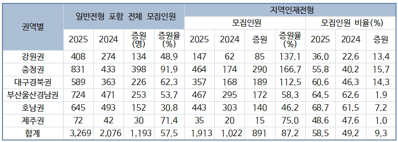 지역 의료 인력 부족 문제를 해결하기 위해 지역인재전형 선발 인원이 대폭 확대되었습니다. 특히 충청권과 강원권 소재 대학의 지역인재전형 규모가 눈에 띄게 증가했습니다.