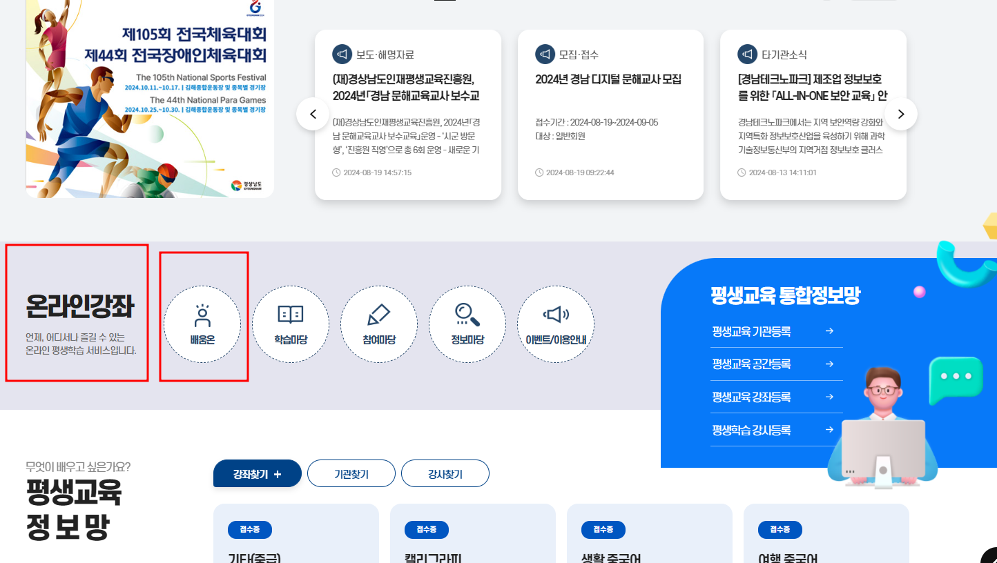 경남 배움온 홈페이지