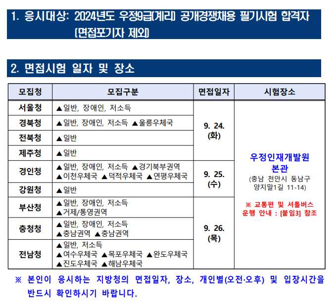 *첨부: 2024년도 우정9급(계리) 공무원 공채 필기시험 합격자 및 면접시험 일정 공고