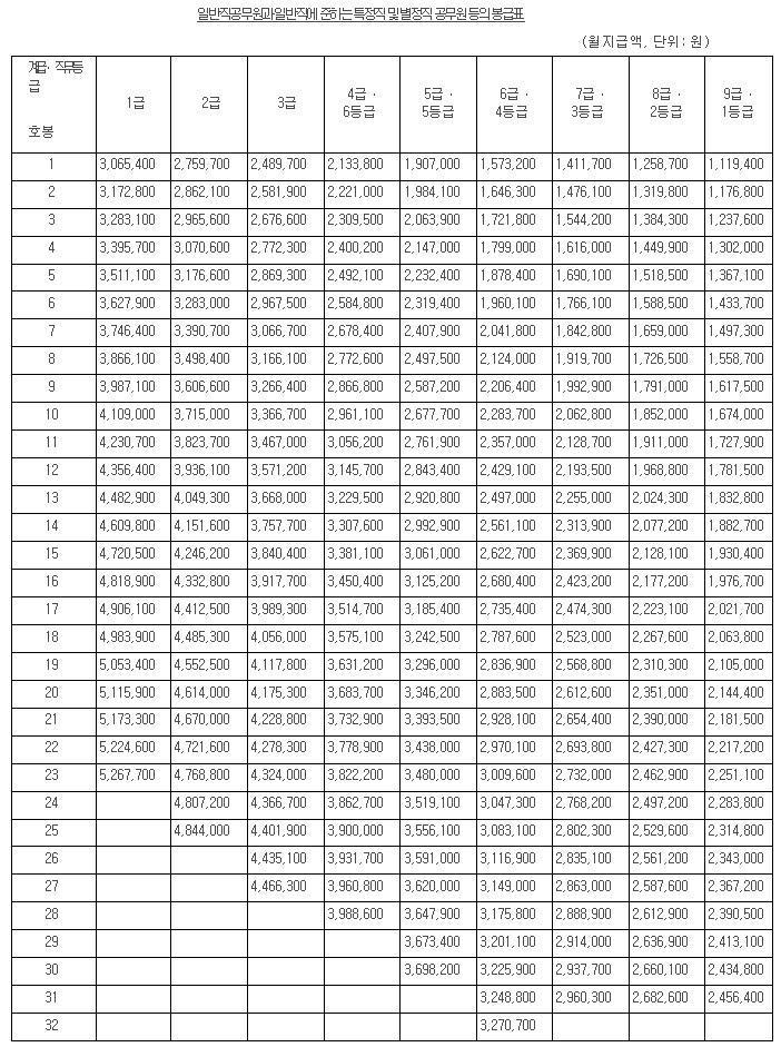 행정안전부는 이 같은 내용의 국가, 지방 곰무원 보수 및 수당규정 개정안을 지난 1월 4일 이명박 주재로 열린 국무회의에서 의결됨에 따라 올해 1월부터 시행에 들어갔습니다.