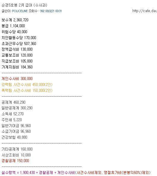 서울 지방직(강남 3구), 3교대 경찰, 소방직 공무원은 이보다 훨씬 더 많습니다. 200은 훌쩍 넘는 것으로 알고 있습니다. 순경4호봉 실수령액이 230정도라고 하니까요. 3교대 경찰, 소방공무원이 일반 행정직렬의 공무원 보다 더 많은 월급을 받는 것은 당연한 일이죠.